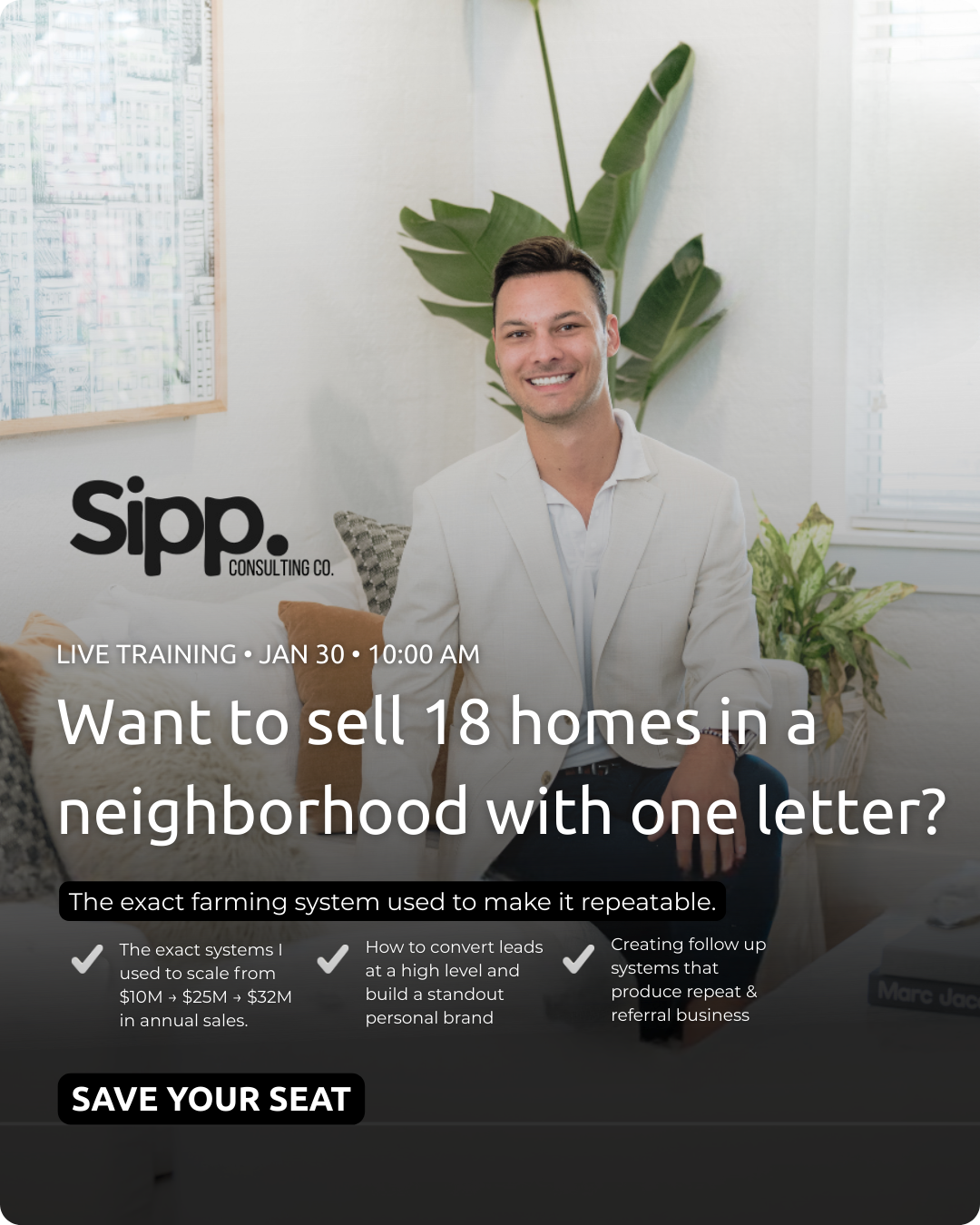 It is the specific, documented system I developed and used to help scale production from $10M → $25M → $32M. It isn't just a "good idea"—it’s a step-by-step execution plan for selecting a neighborhood, timing your mailers, and using my exact letter templates to win listings. I now coach agents on how to install this exact same framework into their own businesses.
